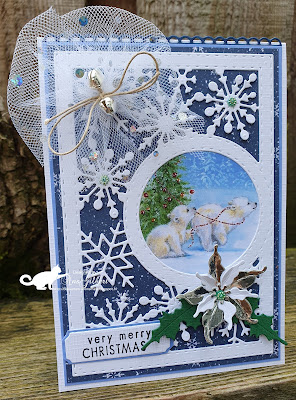 Vandaag heb ik 2 easel kerstkaarten, de eerste met een lief plaatje van een border collie (GH3217) het DP is Snowy Winterland van Craft 'Clock en DP van Craft Sensations..